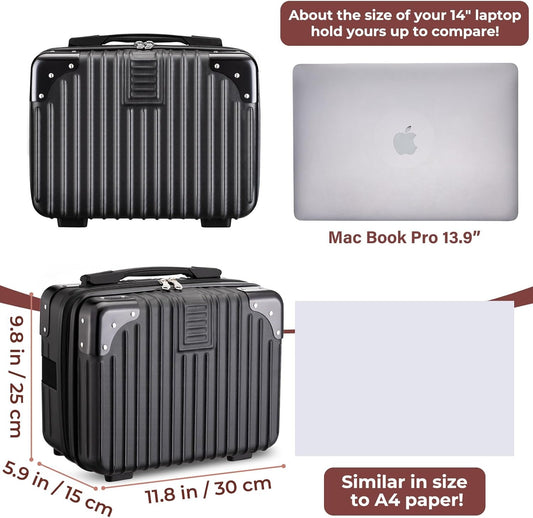 • 14 Inch Portable Hard Shell Cosmetic Travel Case, Mini Travel Hand Luggage with Elastic Band Travel Makeup Case, Small Makeup Carrying Suitcase for Train Cosmetic Bag Travel Camping - Black