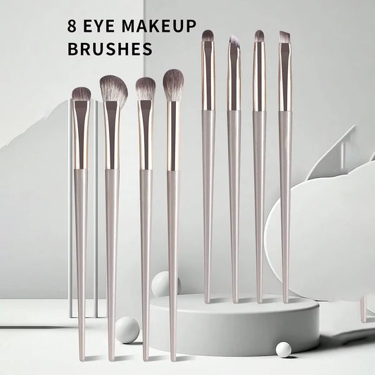 Champagne Silver Portable Eye Makeup Brush Set, 8Pcs/Pack