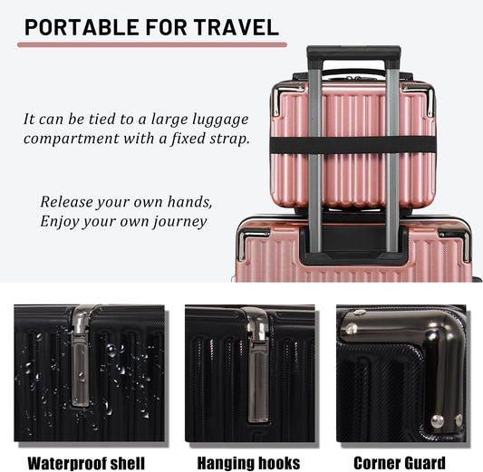 Makeup Travel Case, Hard Shell Cosmetic Case Organizer, Portable Cosmetic Bag, Mini Makeup Luggage with Shoulder Strap, ABS Surface, Zipper, Large Capacity, Black